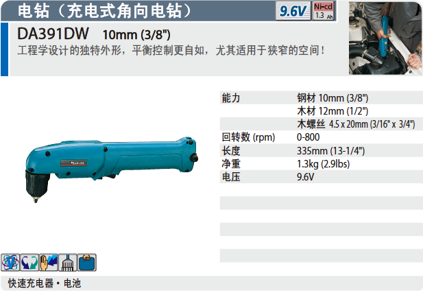 充电式角向电钻DA391DW 10mm(3/8")